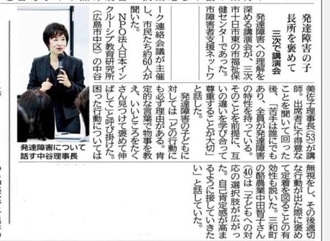 中国新聞で、7/28「発達障害といじめ」セミナー講師をしてくださった