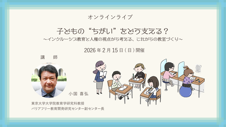 「子どもの“ちがい”をどう支える?~インクルーシブ教育と人権の視点から考える、これからの教室づくり~」